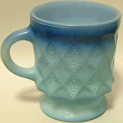 アメリカの古い白色ガラス製のマグカップ、それもファイアーキング・キンバリーという商品名の一品だとか。
